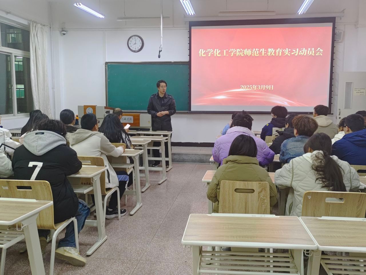 3月9日晚,公司举行第33批师范生援疆实习支教及省内顶岗实习支教岗前培训会。威廉希尔williamhill副经理石彦龙,化学教研室负责人、化学221班班主任及36名同学参加了会议。