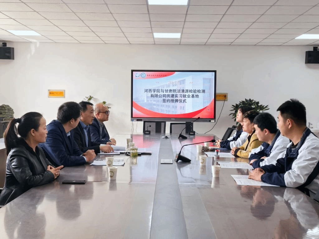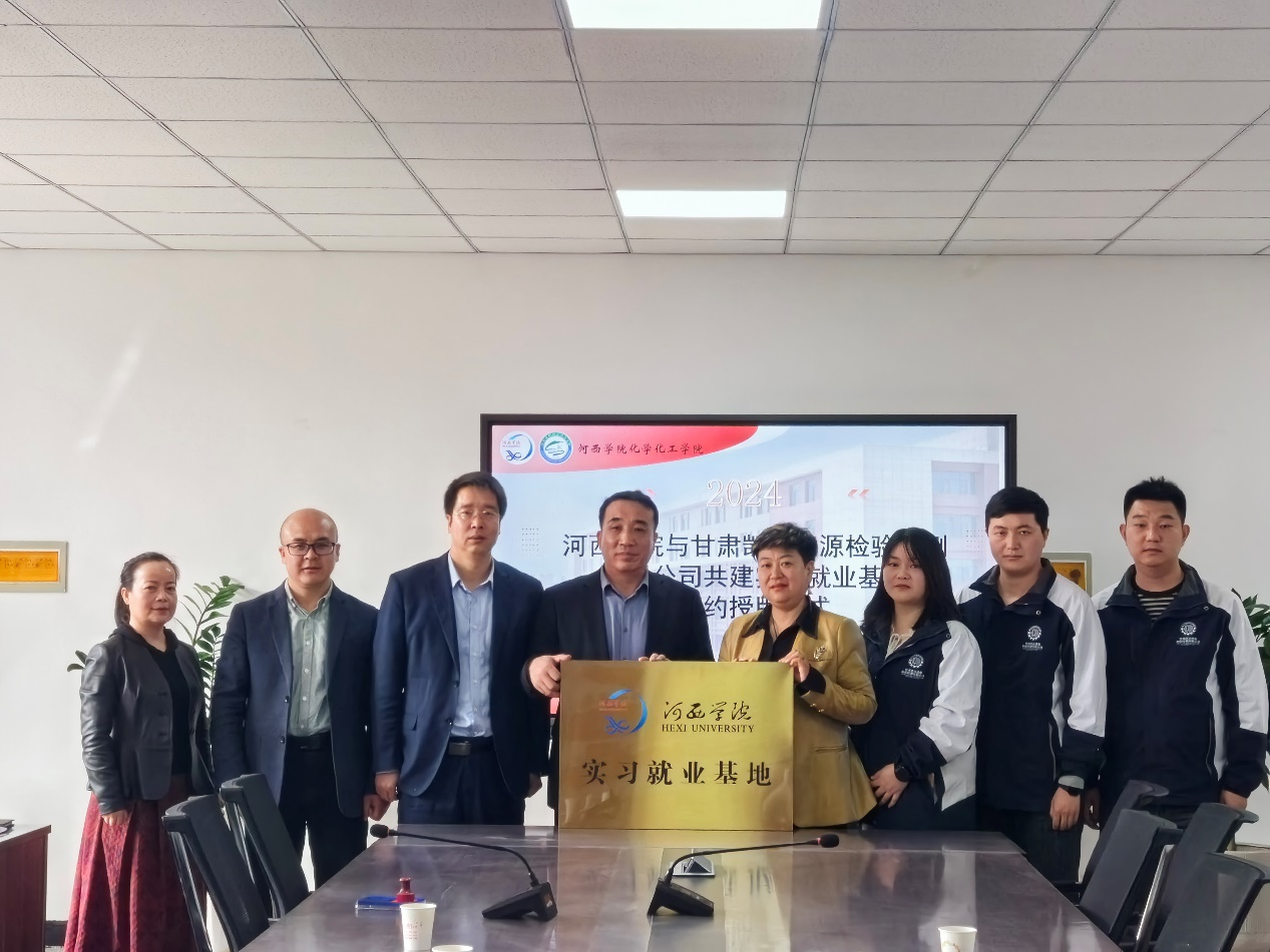4月11日,威廉希尔williamhill与甘肃凯洁清源检验检测有限公司举行实习就业基地签约授牌仪式。威廉希尔williamhill负责人与甘肃凯洁清源检验检测有限公司班子成员一行四人参加了签约授牌仪式。