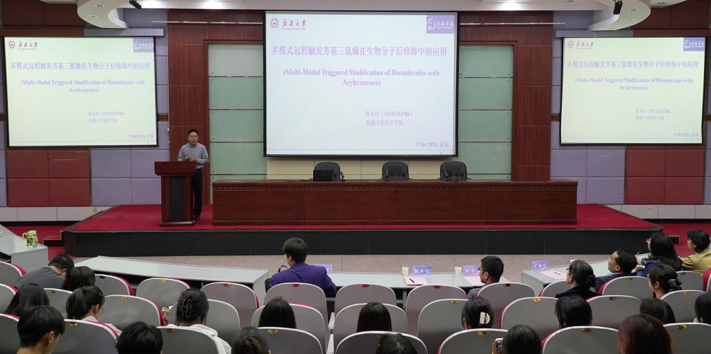 报告会上,公司负责人对张永红教授和胡金豆博士的到来表示欢迎,并简要介绍了两位员工的成就和贡献。张永红教授做了题为《多模式远程触发芳基三氮烯在生物分子后修饰中的应用》的报告。详细介绍了其研究团队在生物分子后修饰领域的研究进展,以及多模式远程触发芳基三氮烯在这一领域的应用。