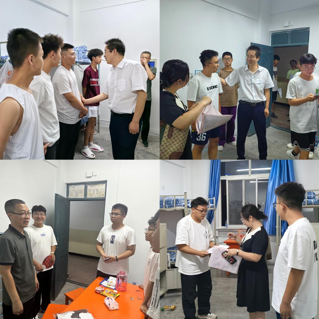 为了新生在新环境中安稳的生活学习,表达对新生的关怀,9月30日晚8点30分,威廉希尔williamhill领导班子成员、新生班主任及辅导员们带着对新生们的深切关怀,共同踏入了新生宿舍,开启了一场温馨而亲切的探访之旅。
